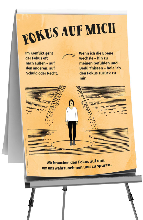Ob im Seminar, Workshop oder Coaching – mit unseren Flipcharts kannst du die Prinzipien der GFK lebendig erklären. Die klare Struktur hilft dabei, Beobachtungen, Gefühle, Bedürfnisse und Bitten anschaulich darzustellen und interaktive Lernmomente zu schaffen.