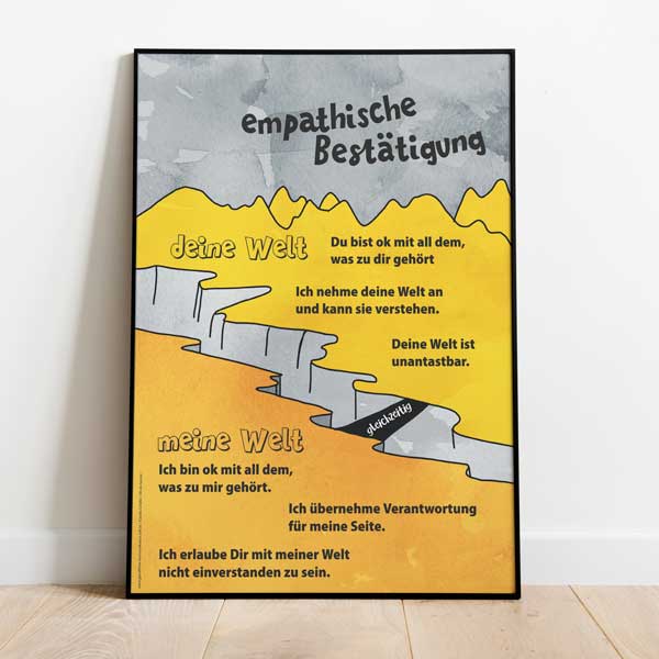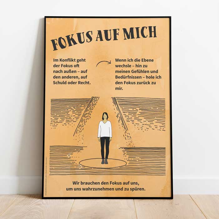 Manche Inhalte entfalten ihre volle Wirkung, wenn sie sichtbar bleiben. Unsere professionell gestalteten GFK-Poster sind nicht nur dekorativ, sondern ein wertvolles Werkzeug für Trainer, Coaches und Teams. Sie machen die Prinzipien der Gewaltfreien Kommunikation auf einen Blick erfassbar und dienen als stetige Erinnerung im Alltag.